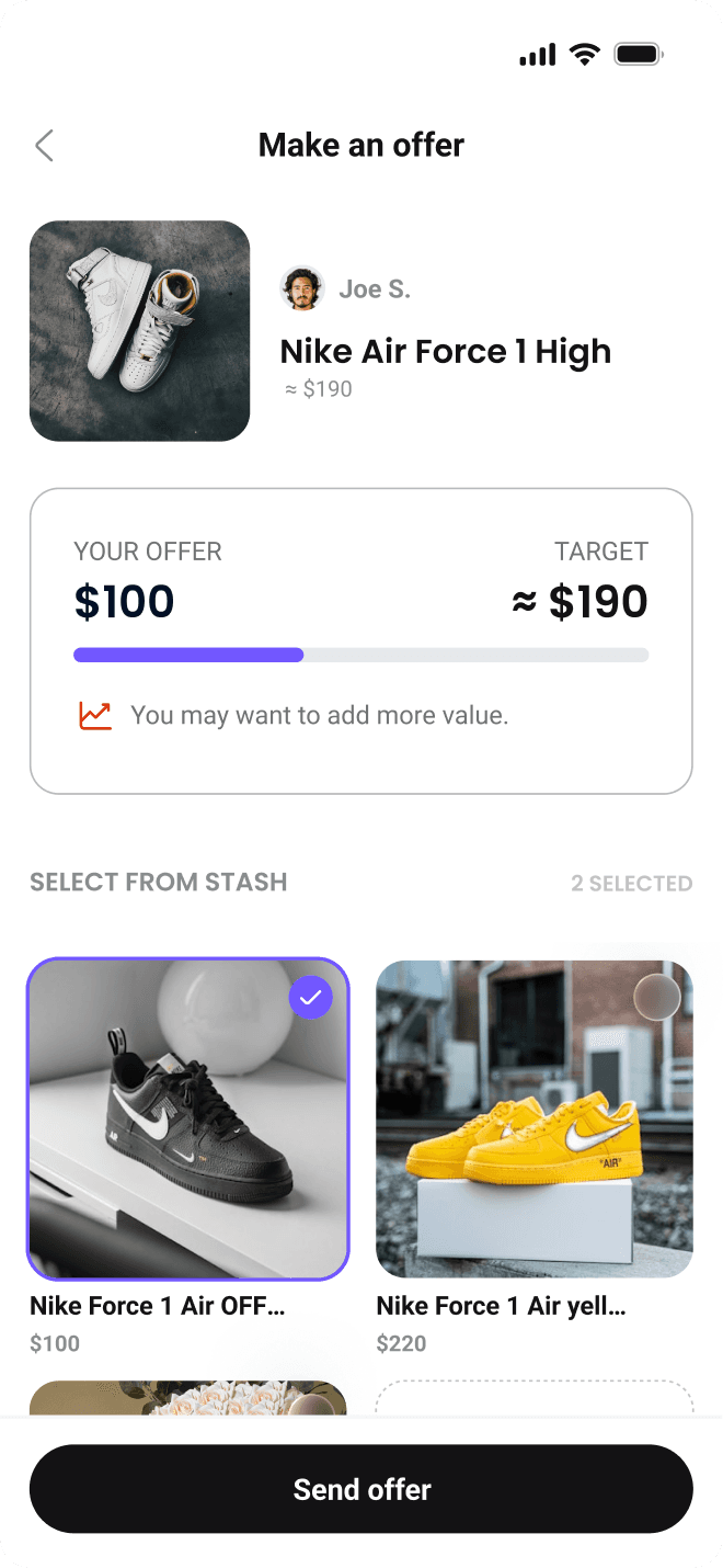 See something you like? Send an offer using items you own. You can adjust, counter, or wait for a response.